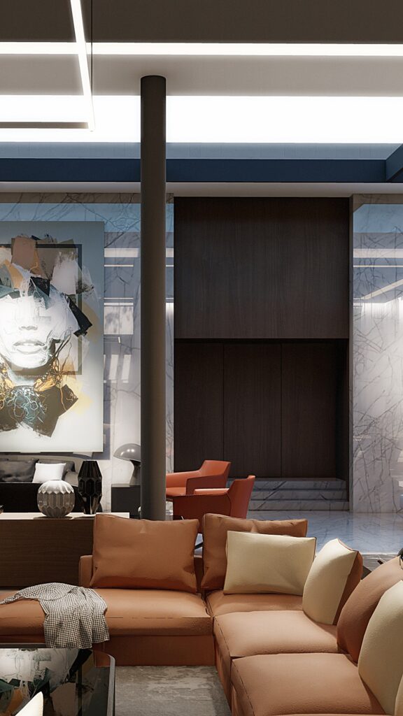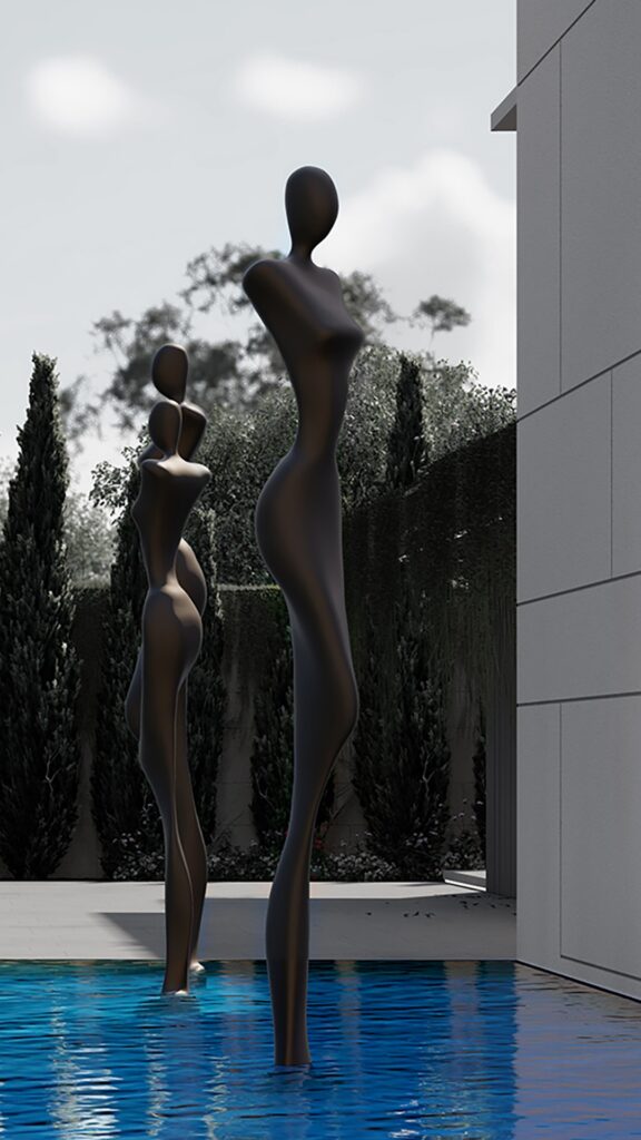Every detail reflects Spirit Design Group’s philosophy of balance and innovation. From the abstract poolside sculptures to the textured vertical screens and signature marble finishes, each element is carefully composed to evoke emotion through space and light. Paired with expressive hand sketches woven into the concept, this residence captures the studio’s unique ability to translate vision into architectural poetry. The result is not just a home—but a timeless statement by Maroon Breidy.
