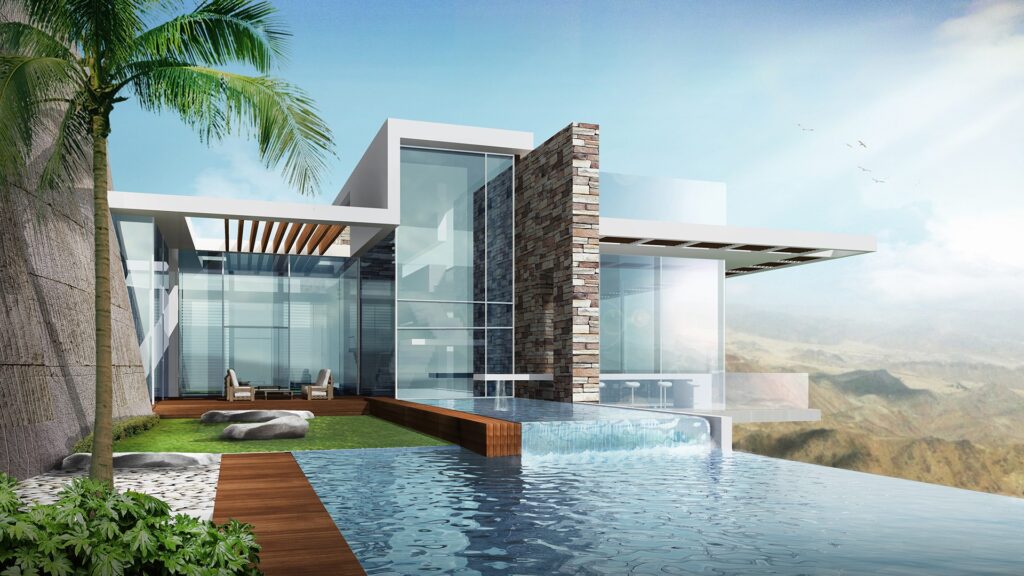 Blending innovation with timeless sophistication, this project showcases a seamless integration of modern architecture and natural landscapes. Expansive glass facades invite breathtaking panoramic views, while carefully curated materials such as stone, wood, and metal create a harmonious balance between structure and surroundings.