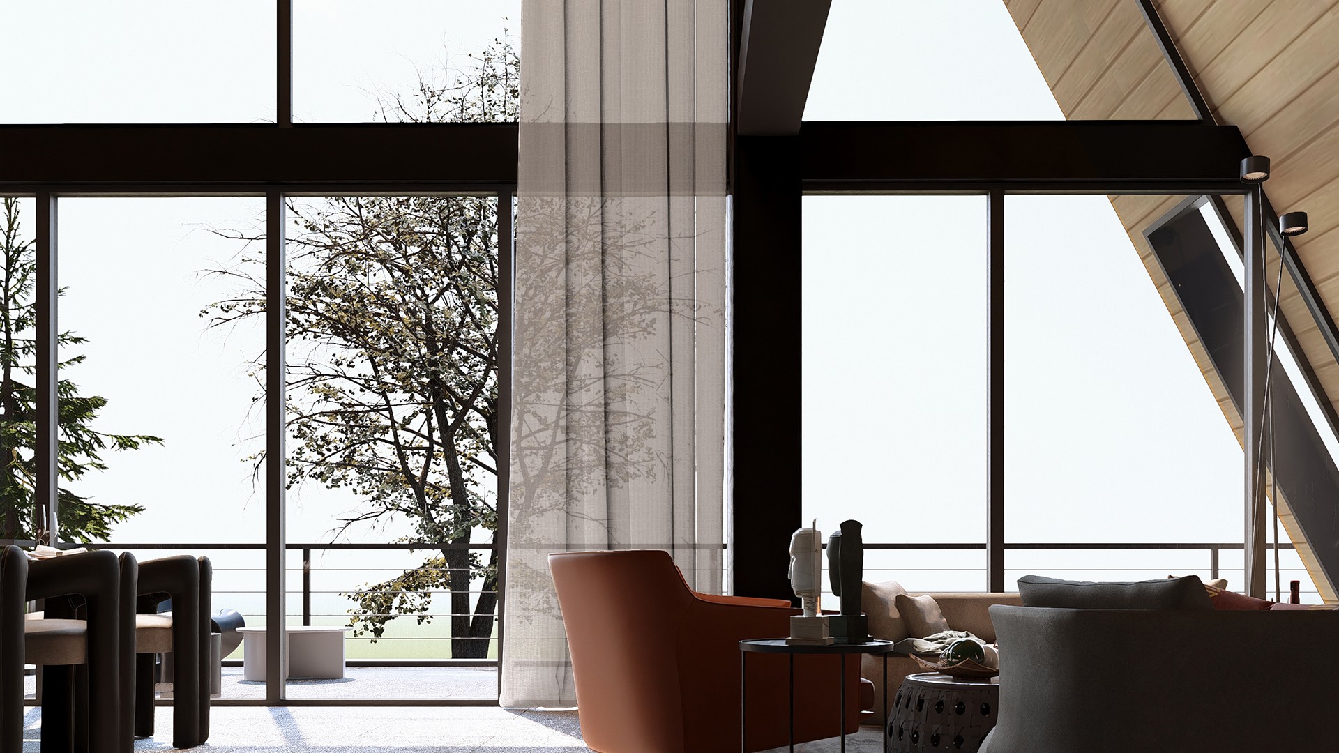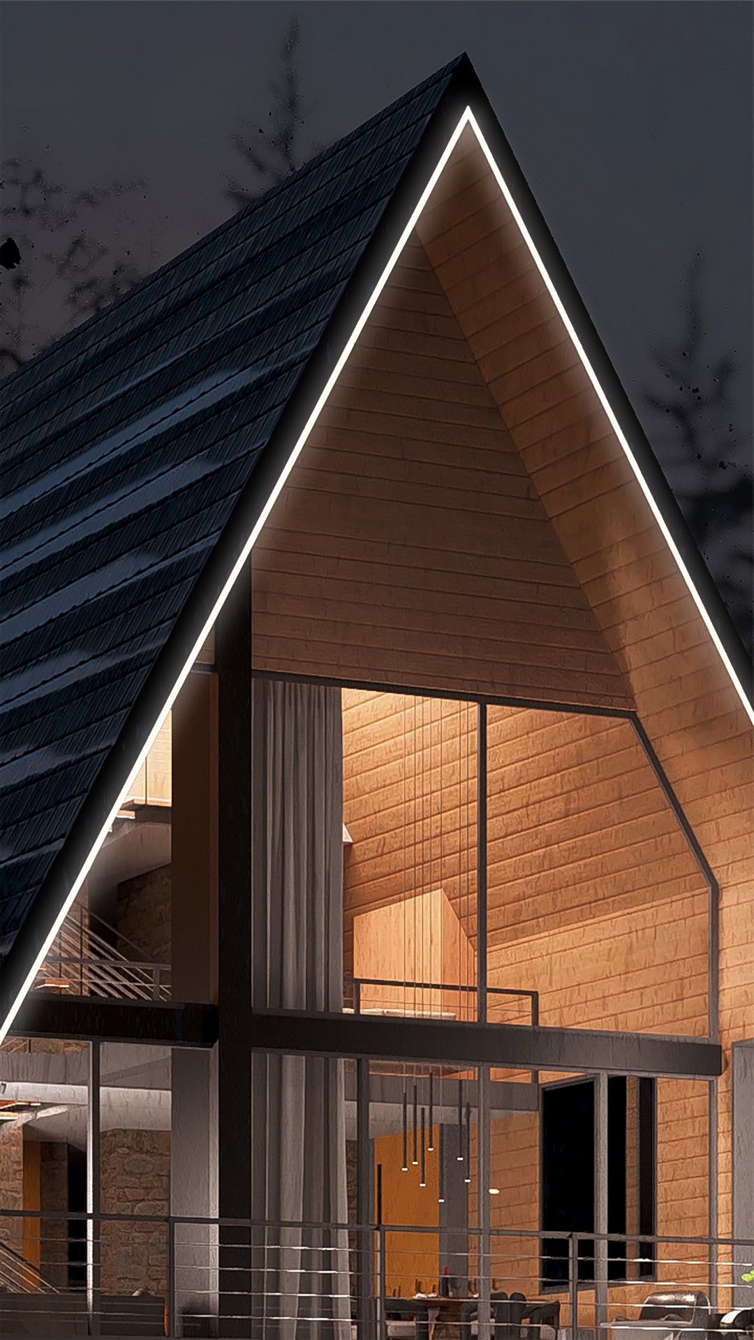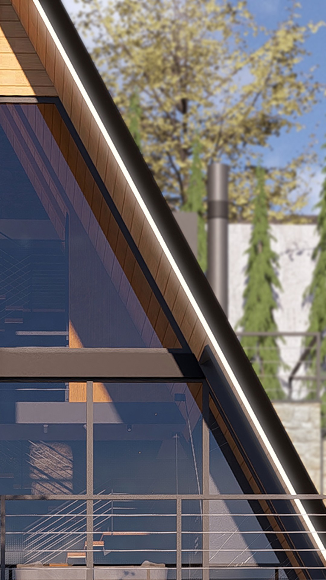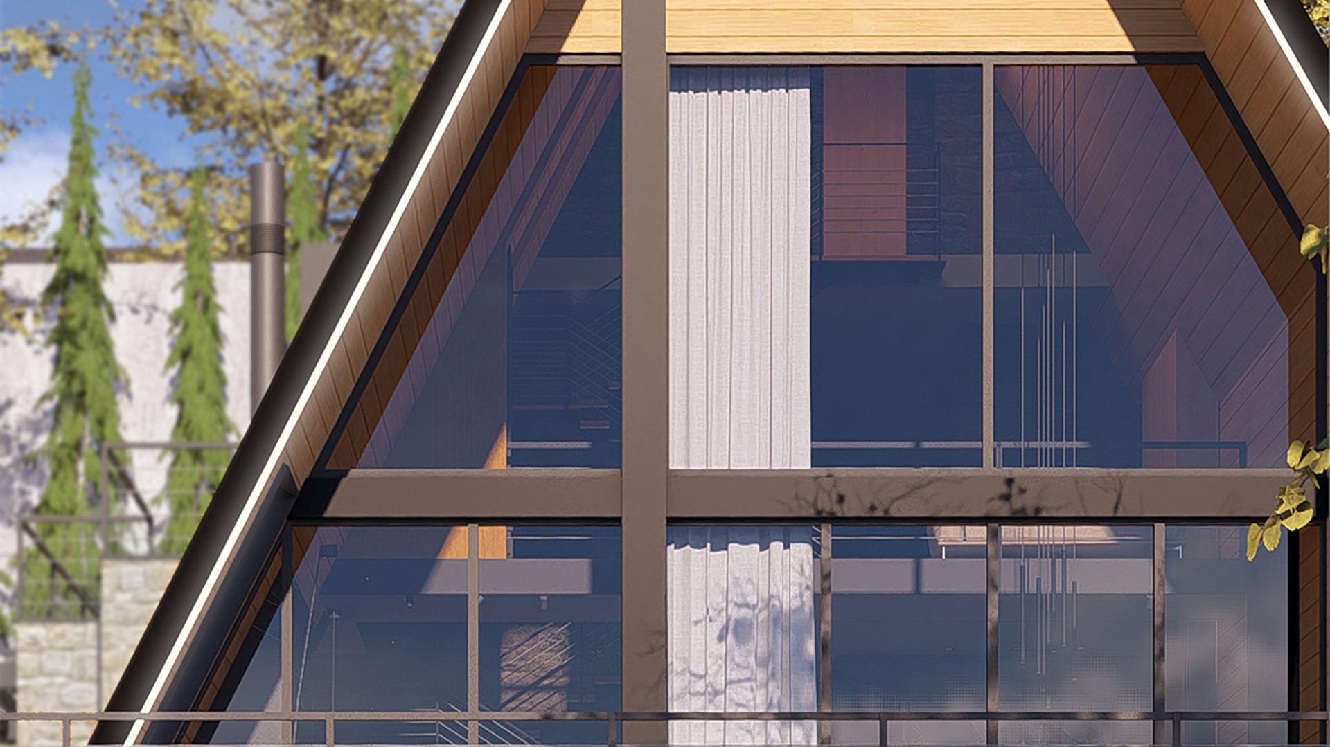 Nestled in nature, this chalet project combines contemporary architecture with rustic warmth. The sharp A-frame silhouette rises elegantly against the landscape, its striking roofline creating a bold yet timeless identity. Large glazed façades invite natural light while framing the serene beauty of the surrounding forest.