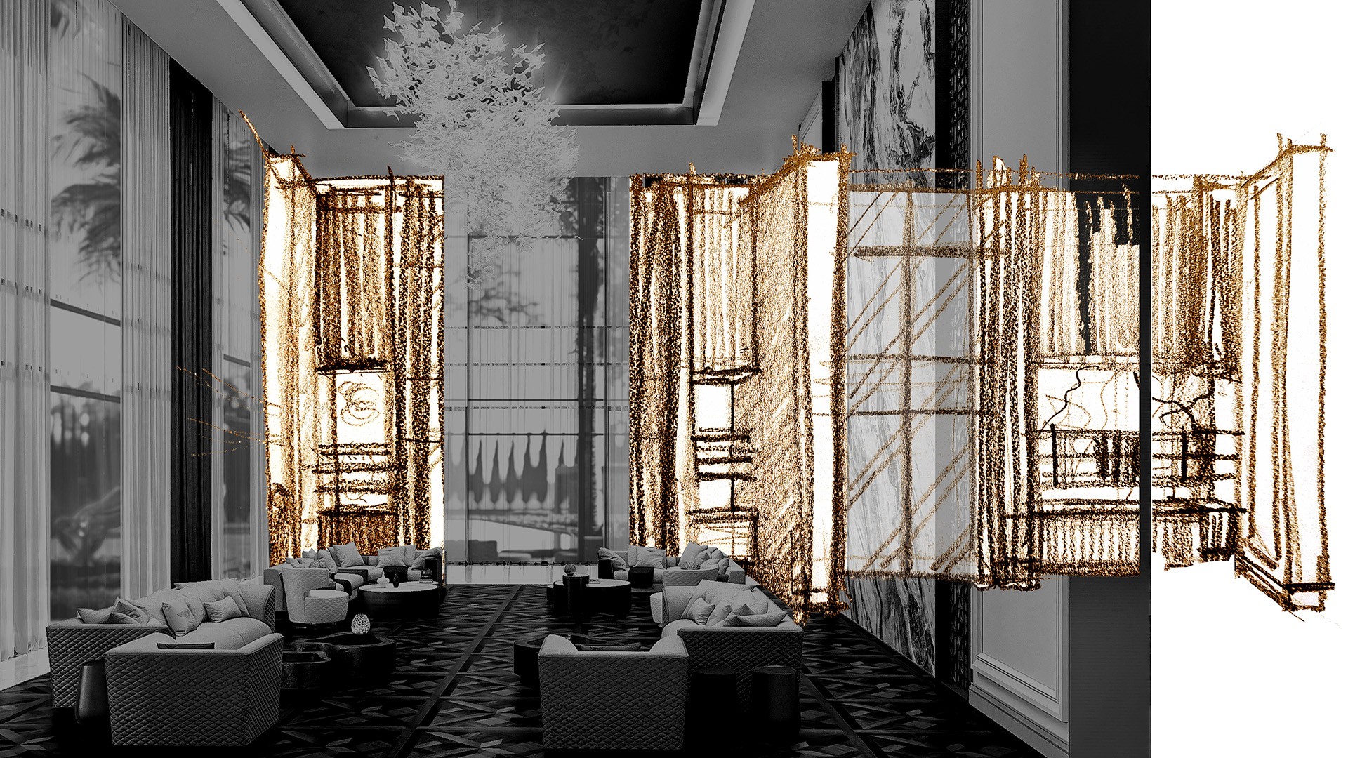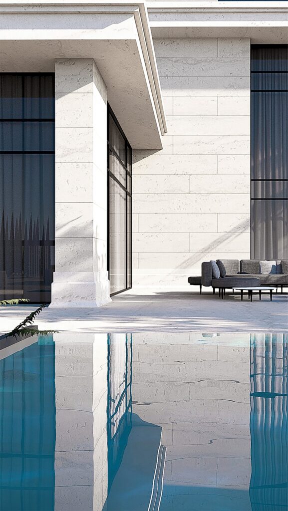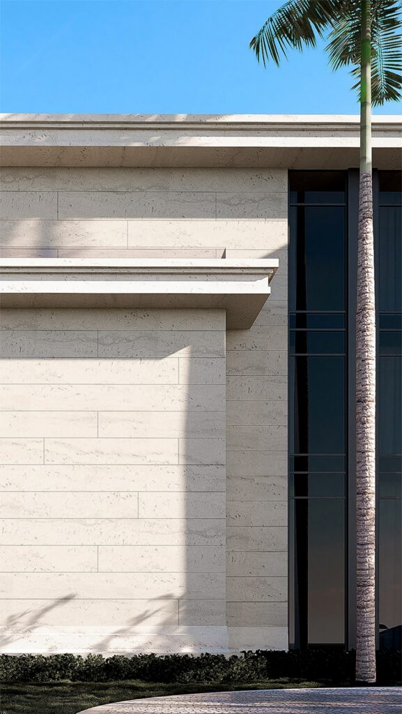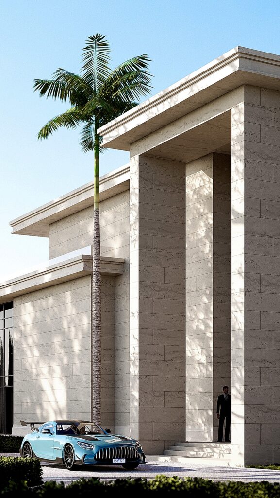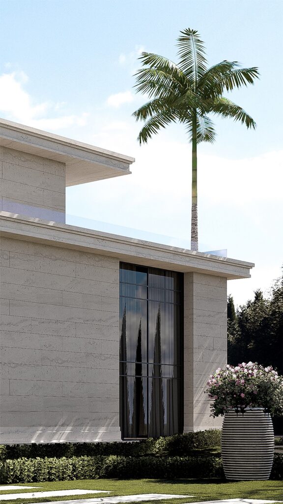 This modern residential design showcases a striking architectural blend of sleek lines and luxurious materials. The exterior features a minimalist yet sophisticated design, highlighted by expansive glass windows and clean stone finishes, complementing the tropical landscaping. The interior embraces an open-plan layout with refined details, blending style and functionality seamlessly. The use of natural light, premium finishes, and spatial flow enhances the sense of comfort and elegance. Designed to elevate everyday living, this project exemplifies modern luxury and attention to detail, creating a unique and inviting atmosphere.